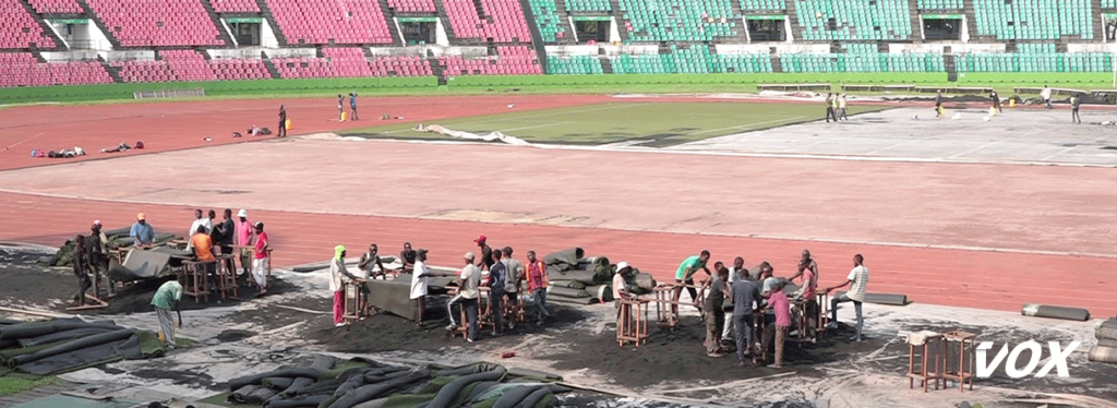 L’ancienne pelouse synthétique du stade Massamba, dans un état de dégradation avancé et qui constituait un handicap pour l’homologation de ce stade par la FIFA, va être remplacée par une nouvelle : « Le stade Alphonse Massamba n’a pas été homologué à cause notamment du mauvais état de sa pelouse. Des hautes instructions ont donc été données pour que la pelouse soit rénovée. Les travaux sont exécutés par une société accréditée par la FIFA qui installera une pelouse FIFA quality-pro, c’est-à-dire la haute qualité des pelouses synthétiques », a expliqué Charles Makaya qui a accompagné le ministre des sports en visite de chantier au stade Massamba Débat.