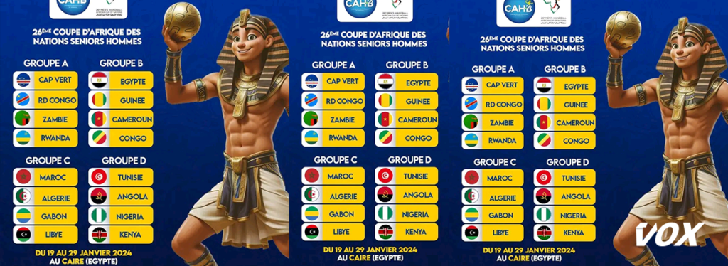 Voici les différents groupes de cette 26ème édition du championnat d’Afrique seniors hommes de handball :