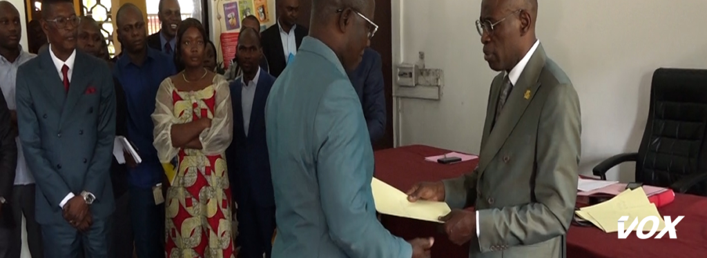 « Je voudrais saluer l’abnégation des camarades syndicalistes qui ont œuvré pour que ces textes soient rendus disponibles et pour que chacun puisse être honoré, rattrapé et avancé. Car le temps qui passe devrait être en lien avec tous les efforts que nous avons consentis au sein de nos différents services », Le ministre de l’enseignement Préscolaire, primaire, secondaire et de l’alphabétisation, Jean Luc Mouthou, au cours de la remise des arrêtés d’avancement.